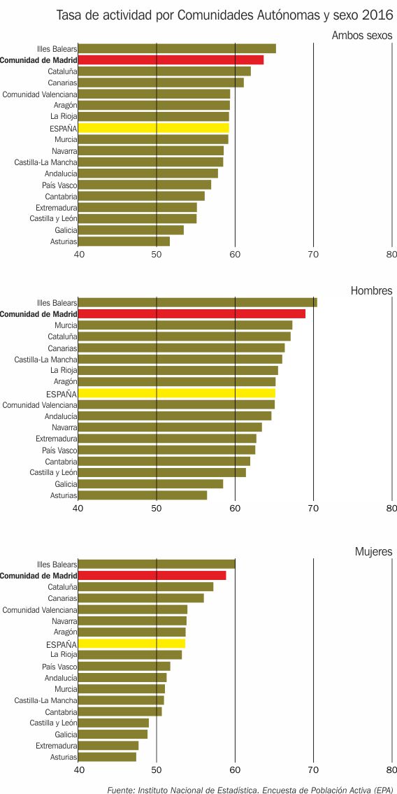 Tasa de actividad por Comunidades Autónomas y sexo 2016