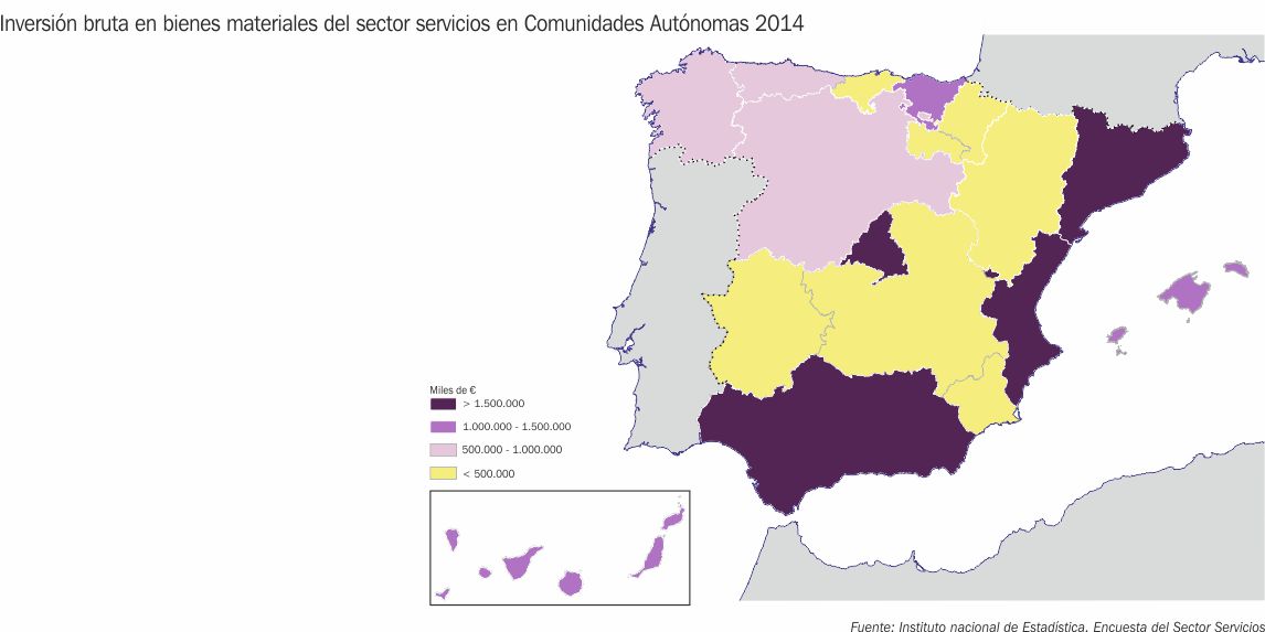 Inversión bruta en bienes materiales del sector servicios en Comunidades Autónomas 2014