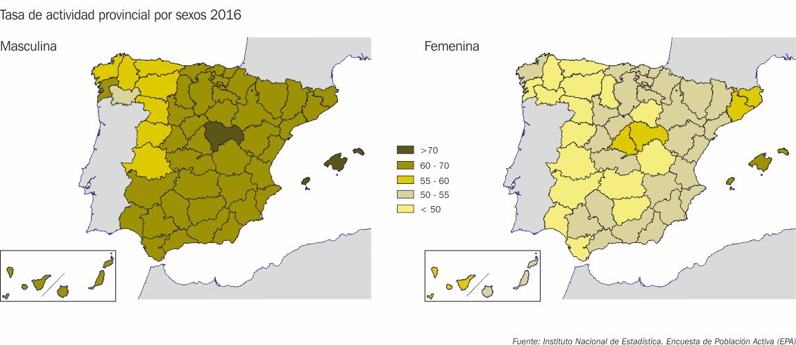 Tasa de actividad provincial por sexos 2016
