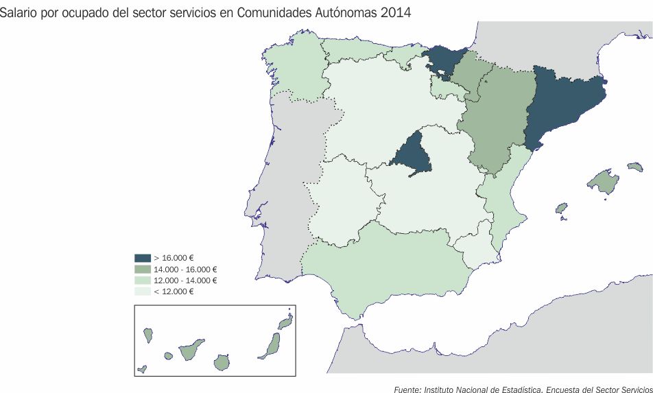Salario por ocupado del sector servicios en Comunidades Autónomas 2014