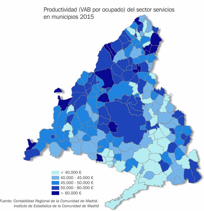 Productividad (VAB por ocupado) del sector servicios en municipios 2015