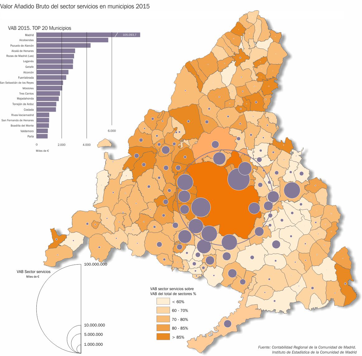 Valor Añadido Bruto del sector servicios en municipios 2015