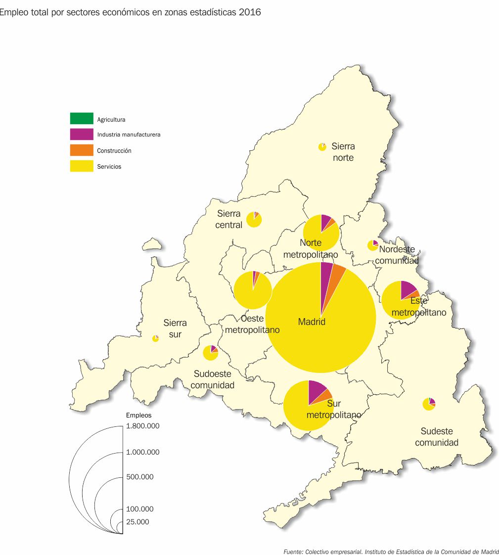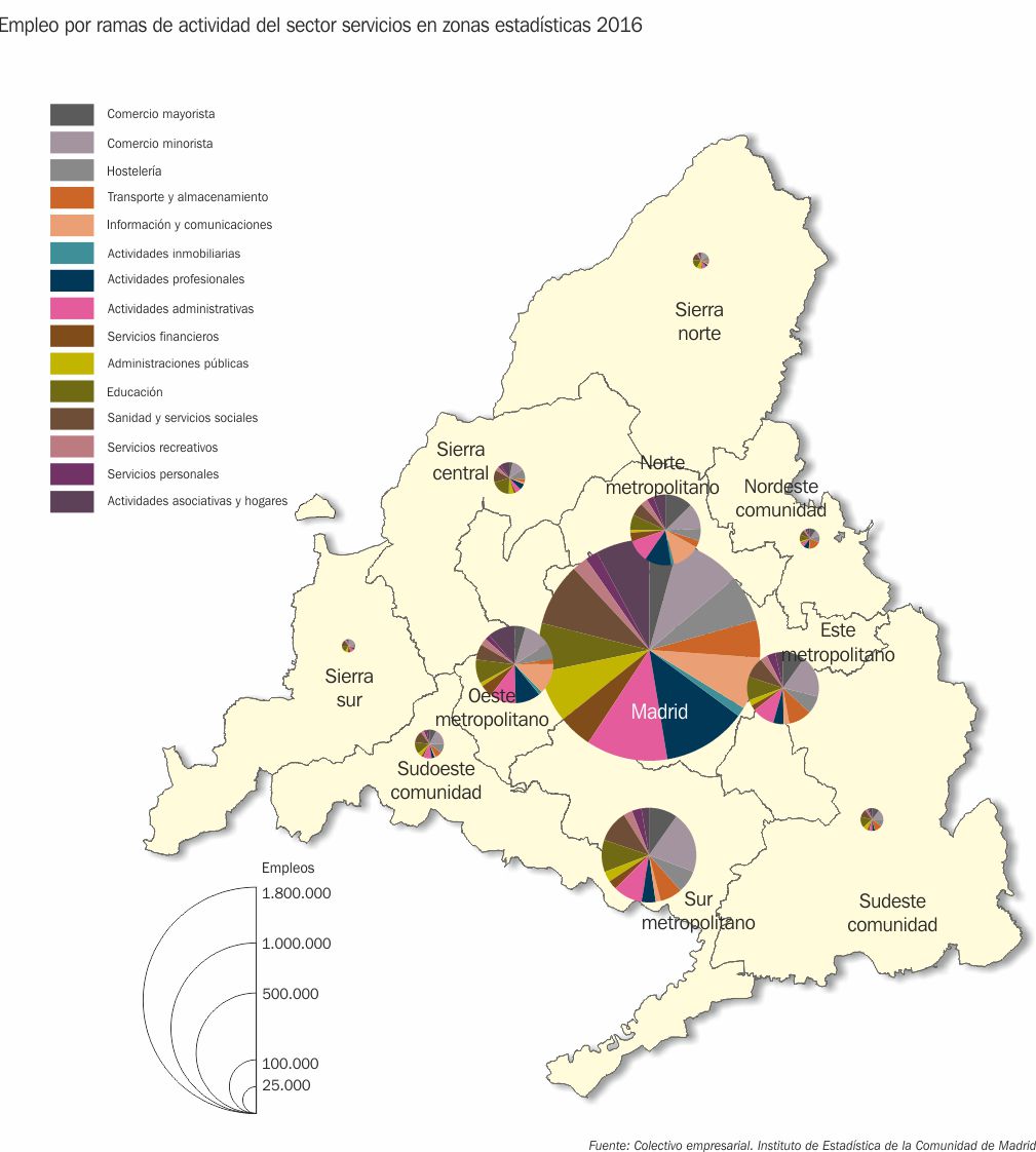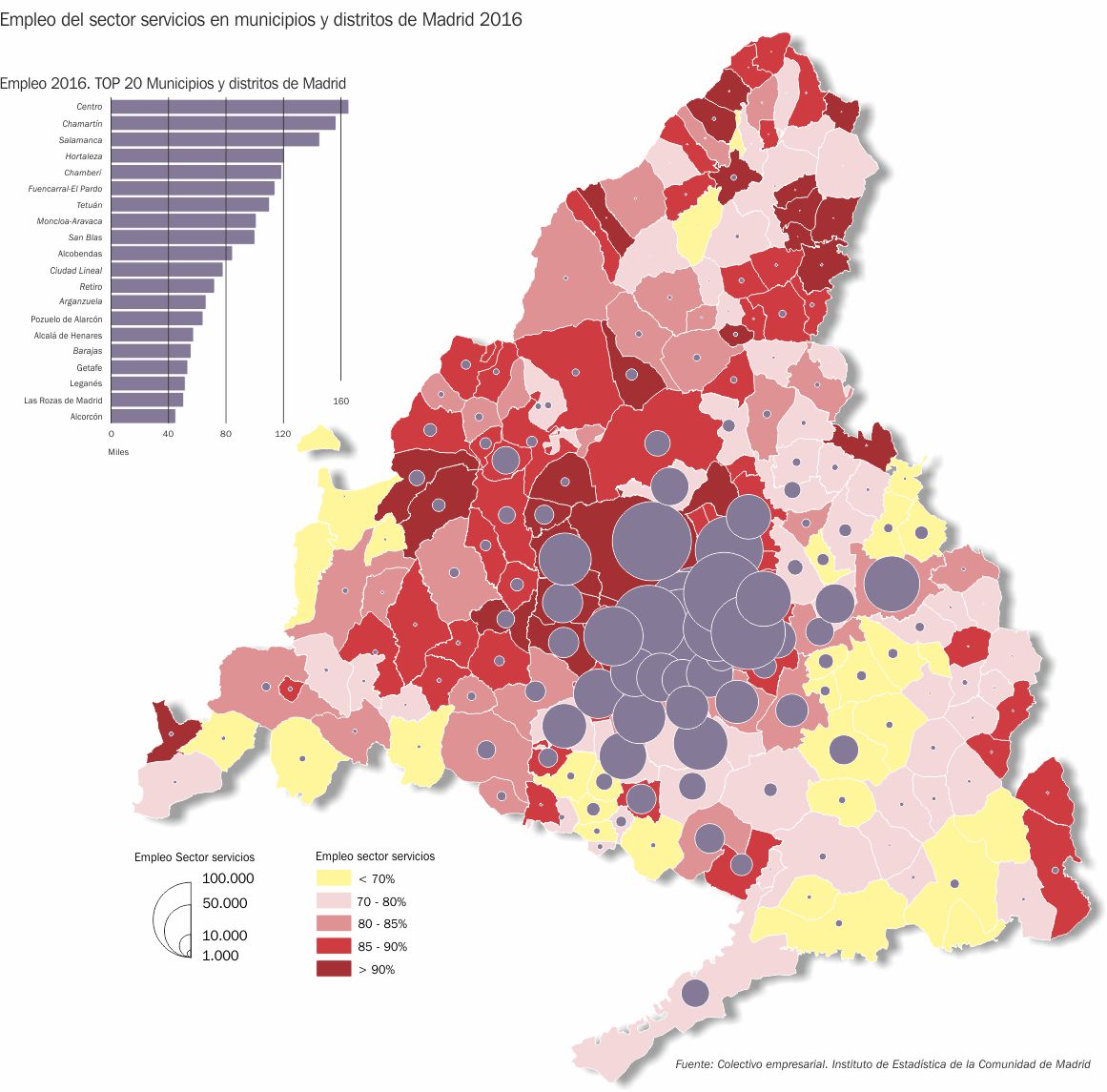 Empleo del sector servicios en municipios y distritos de Madrid 2016