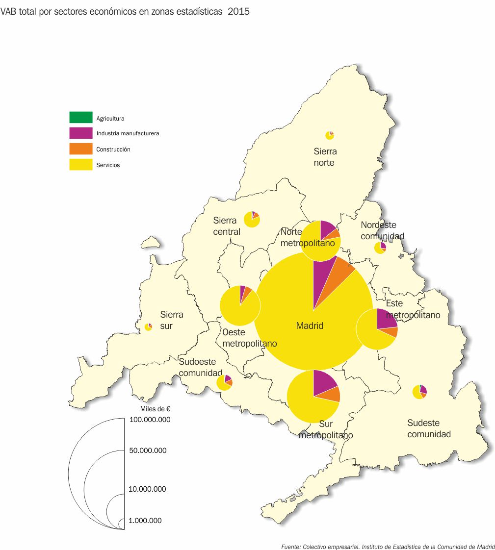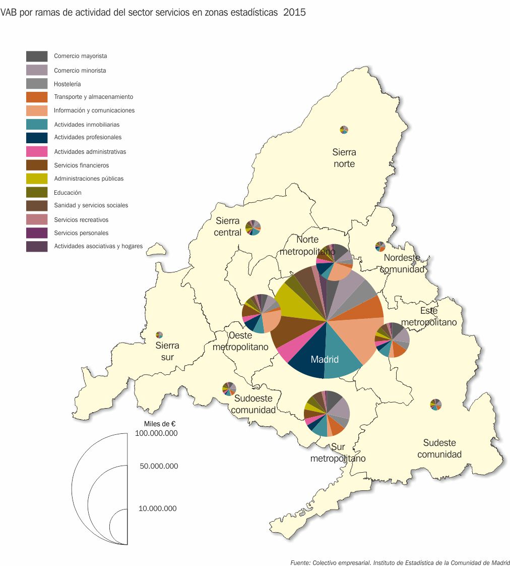 VAB por ramas de actividad del sector servicios en zonas estadásticas 2015