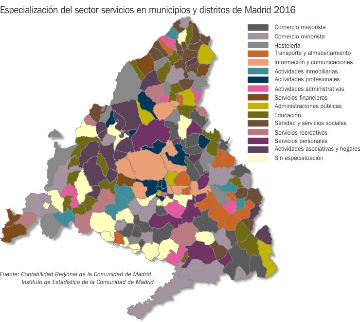 Especialización del sector servicios en municipios y distritos de Madrid 2016