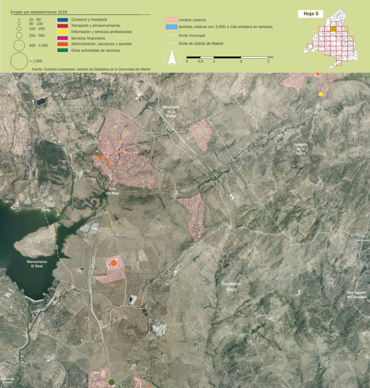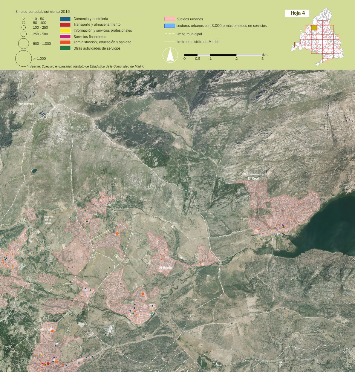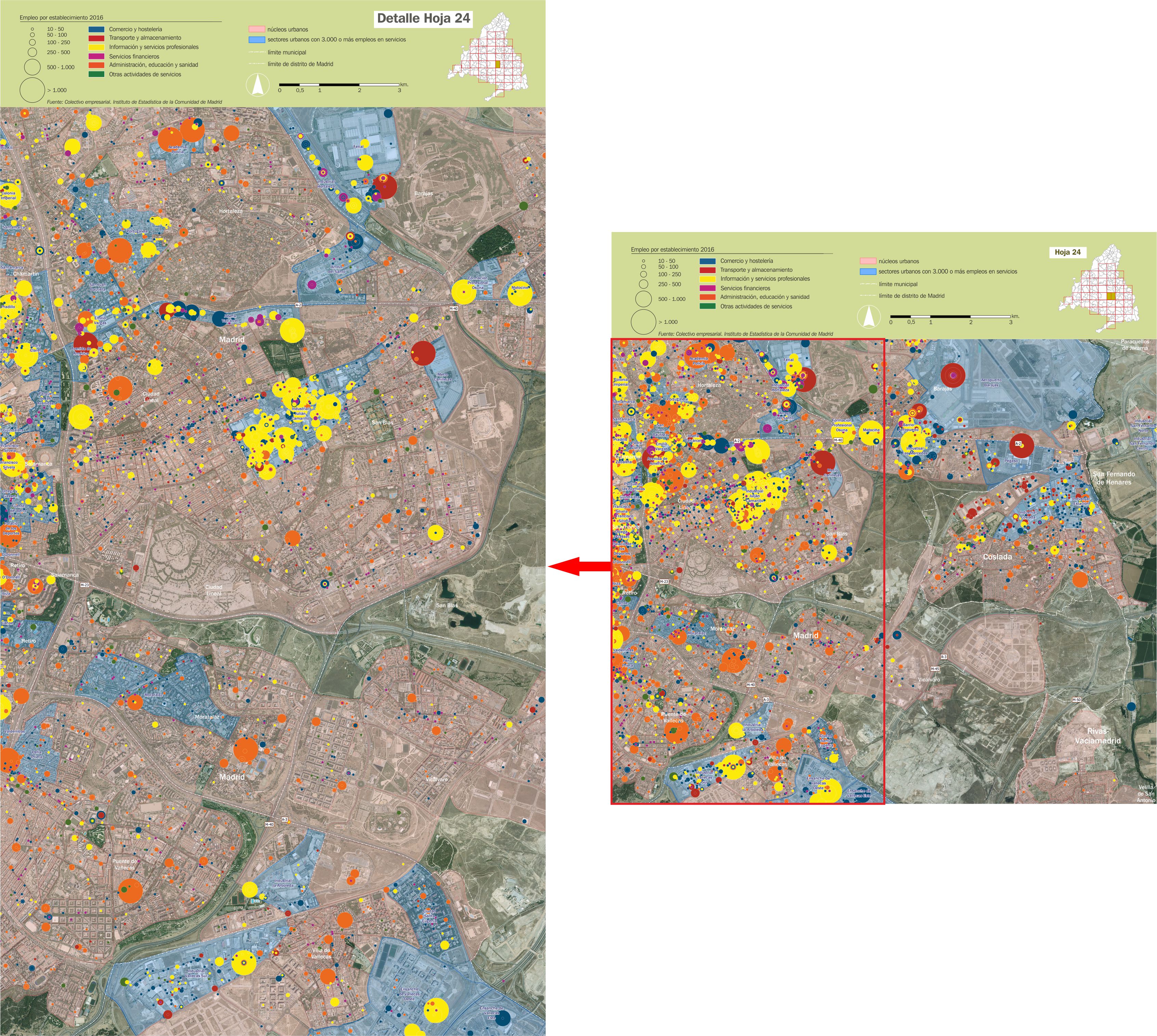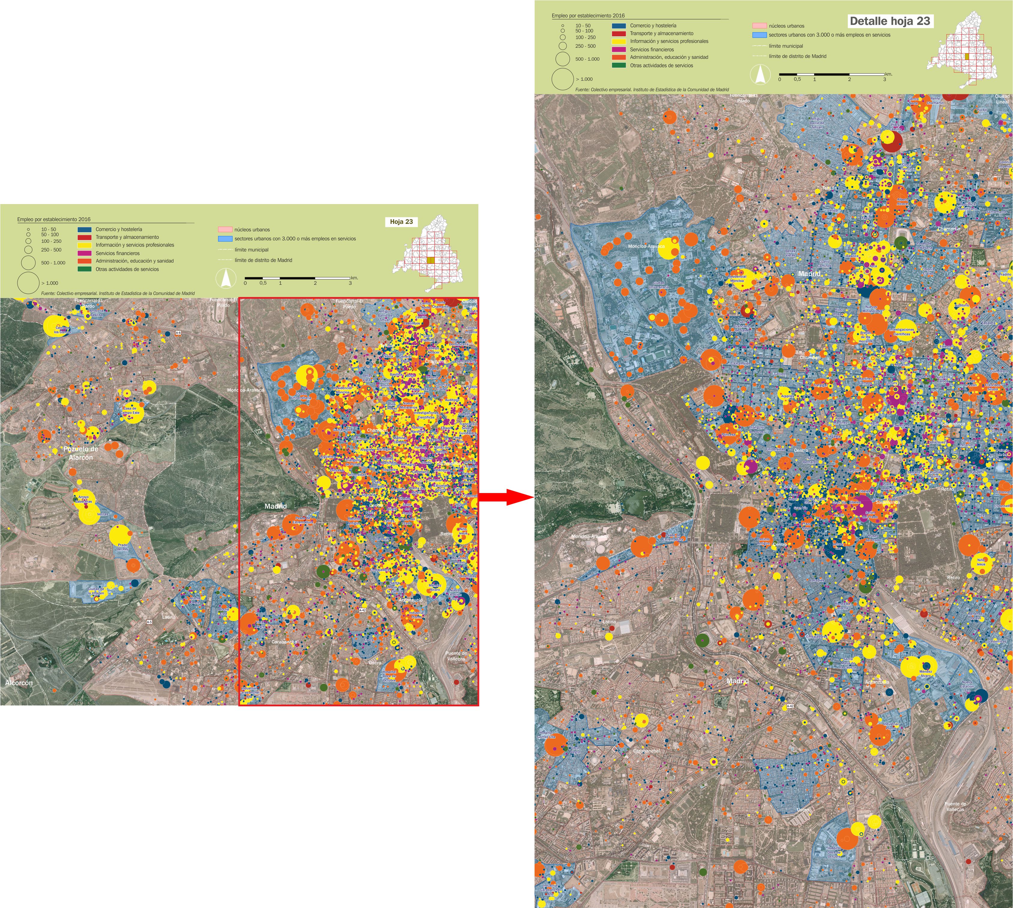 Mosaico cartográfico. Empleo de servicios por establecimientos |