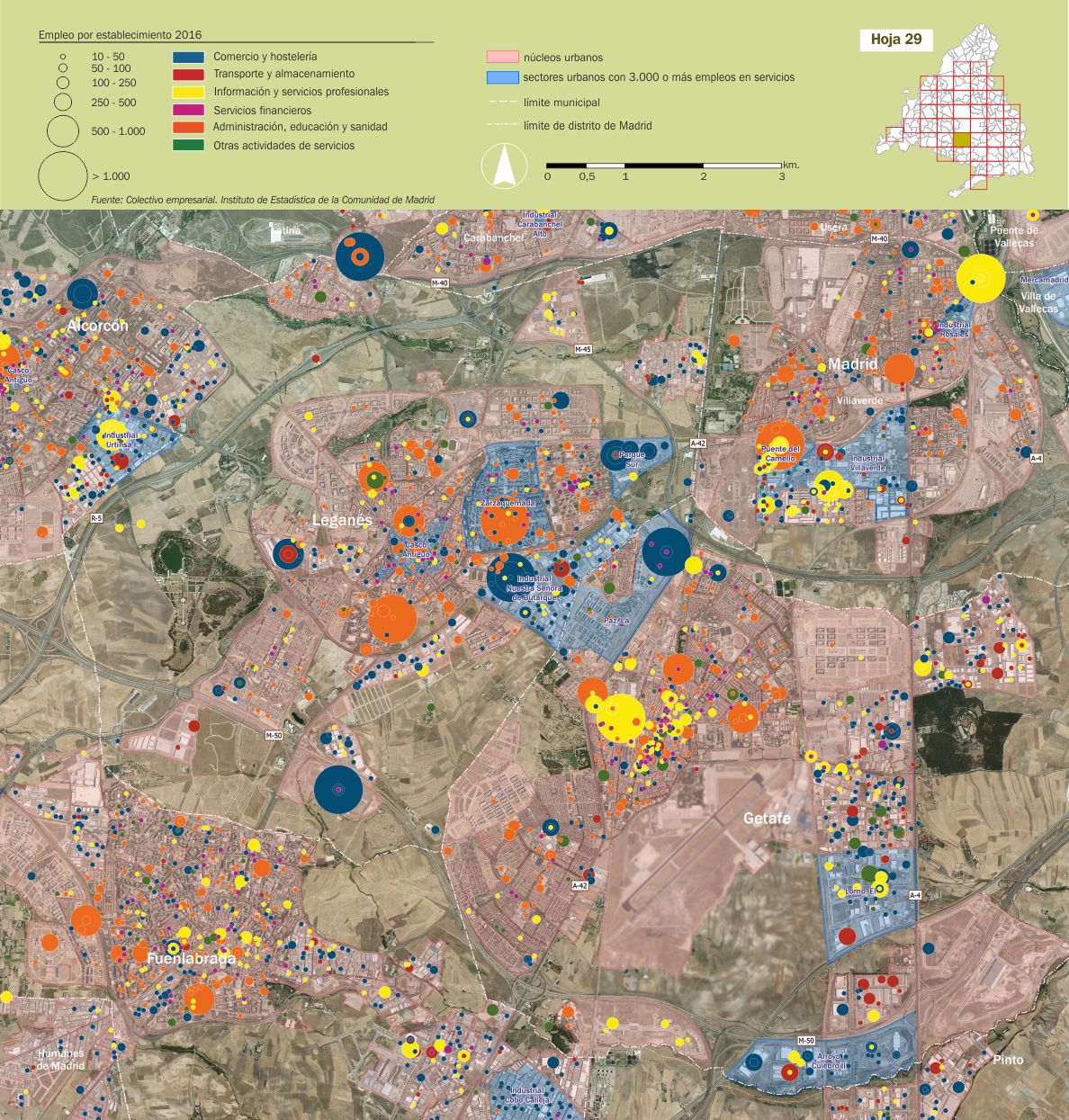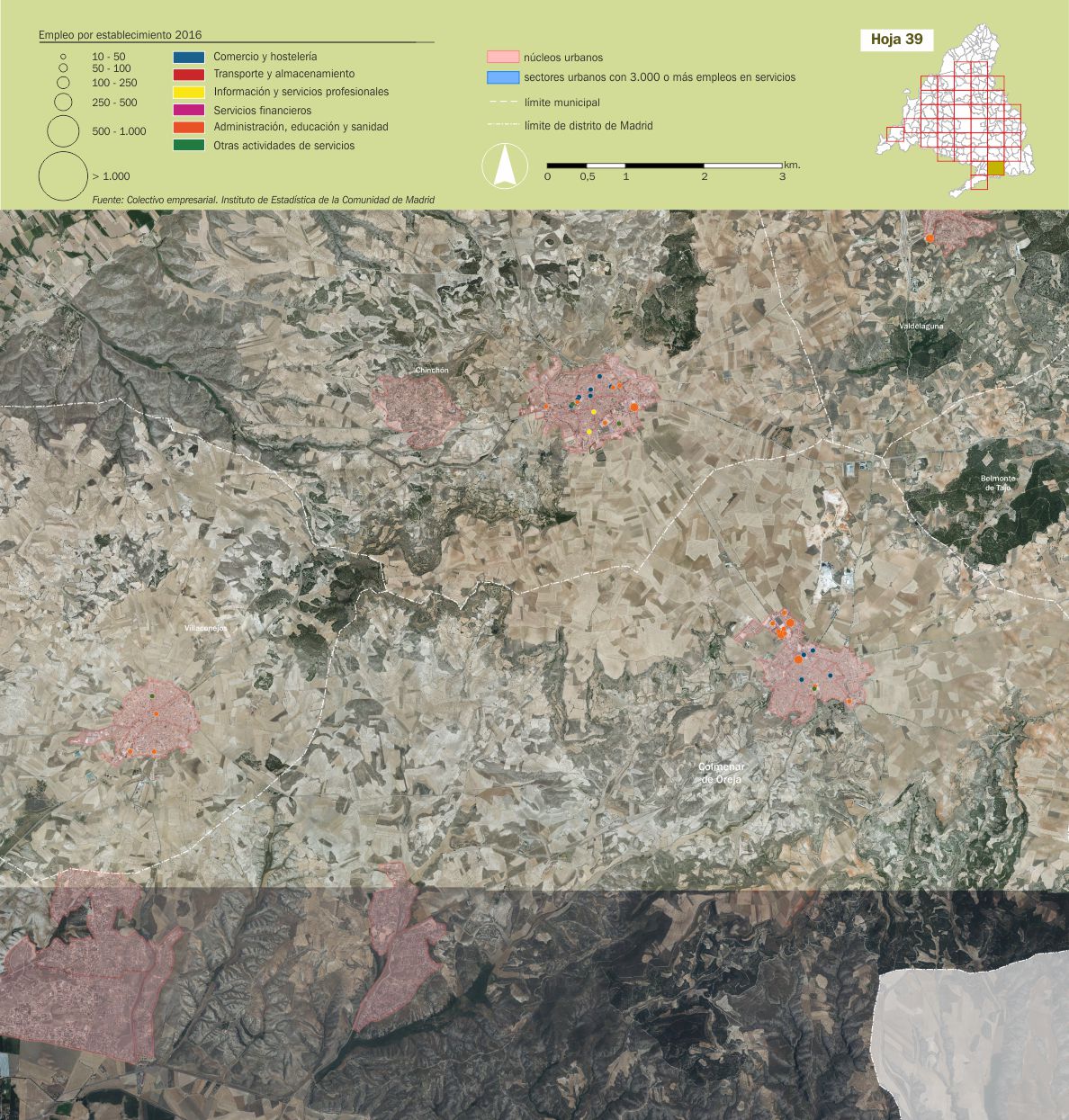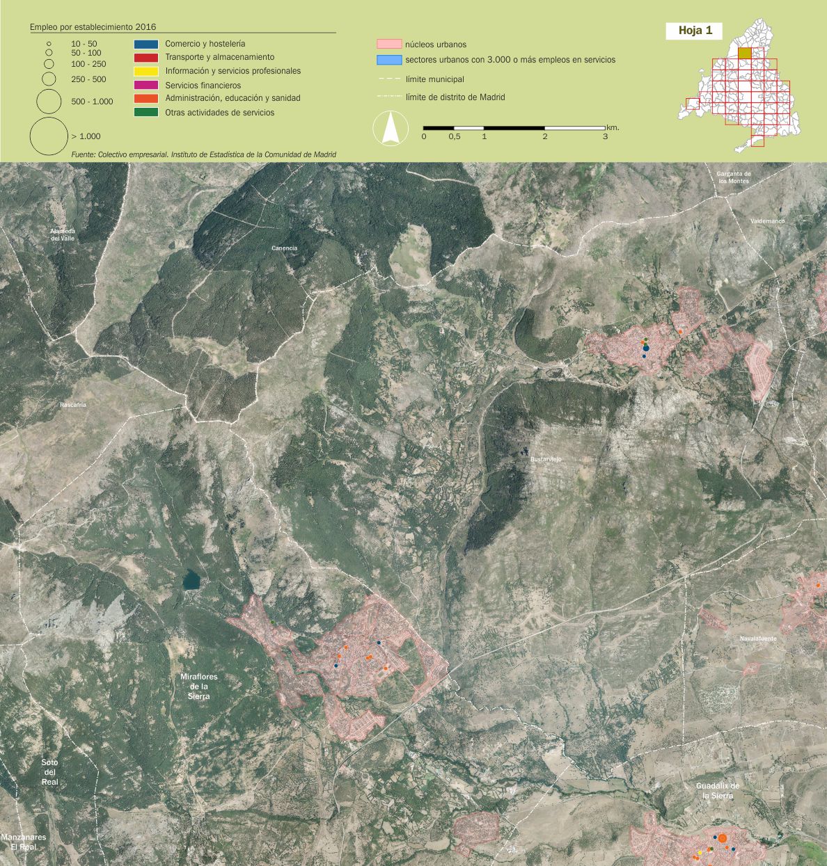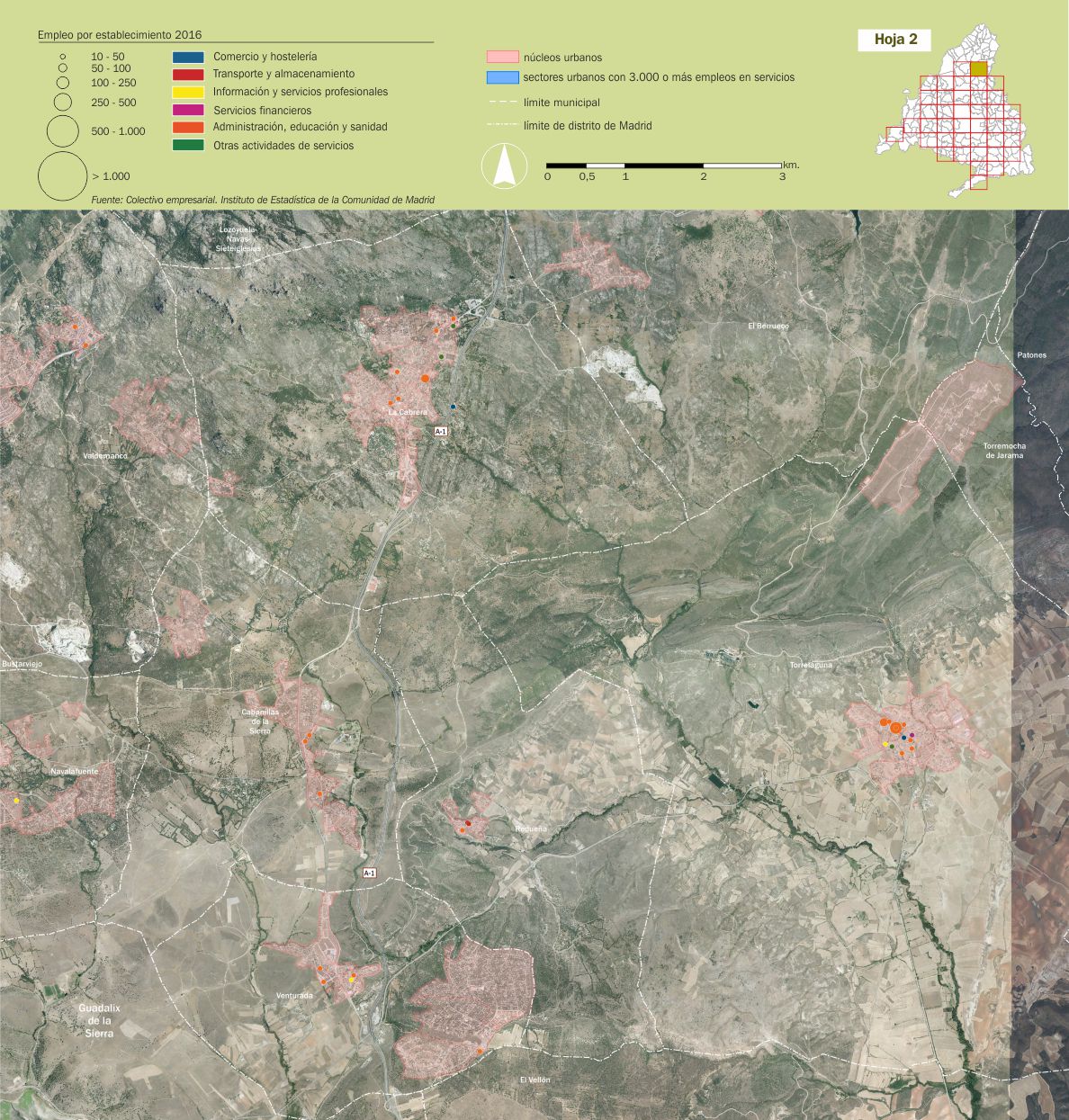 Mosaico cartográfico. Empleo de servicios por establecimientos |