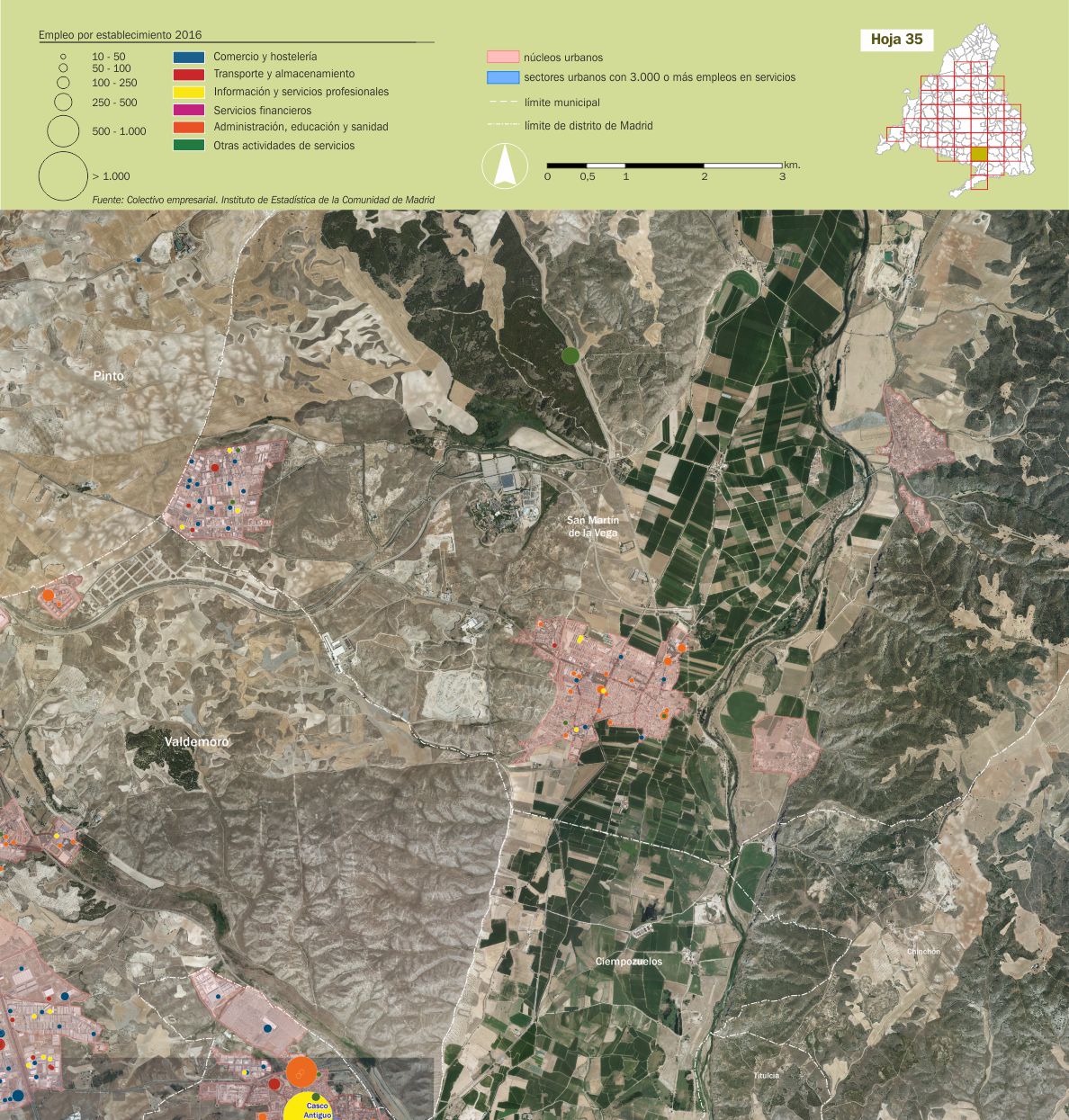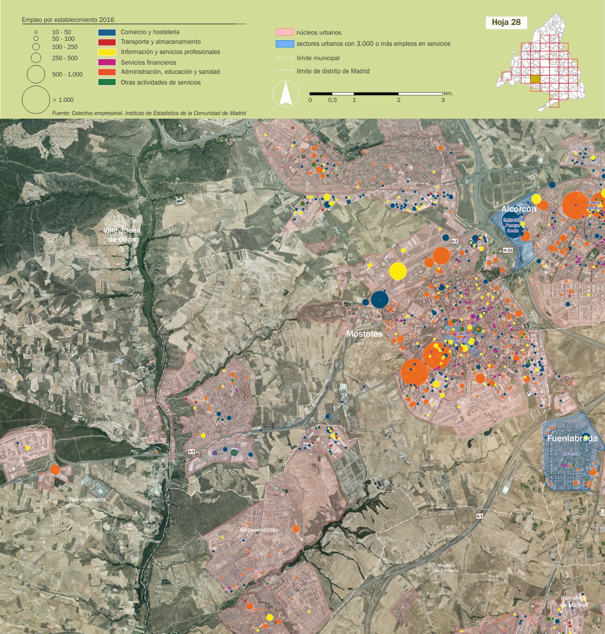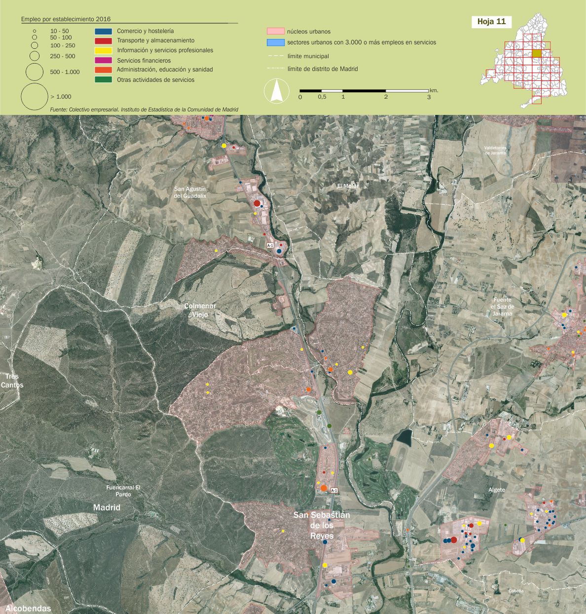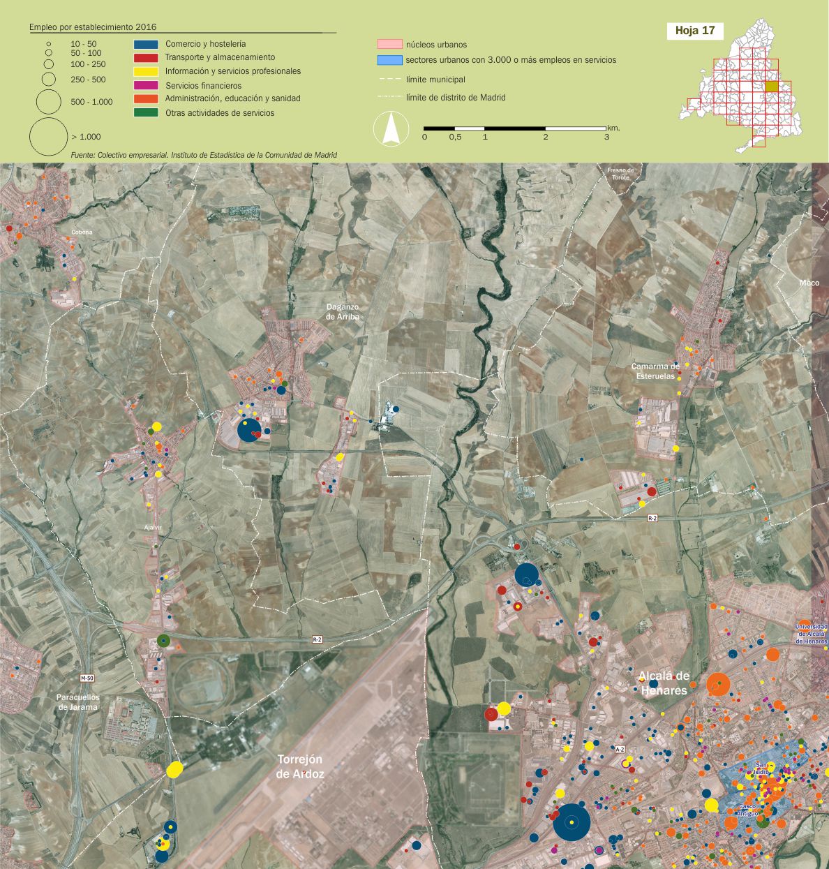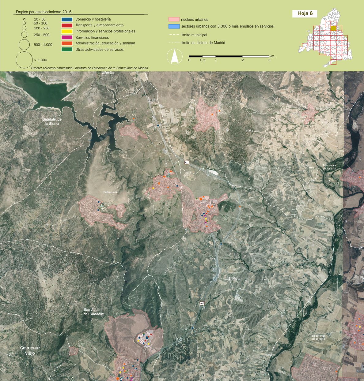 Mosaico cartográfico. Empleo de servicios por establecimientos |