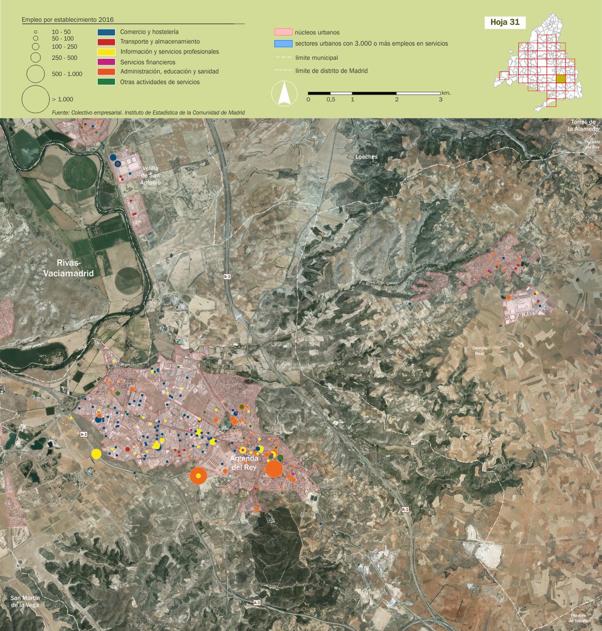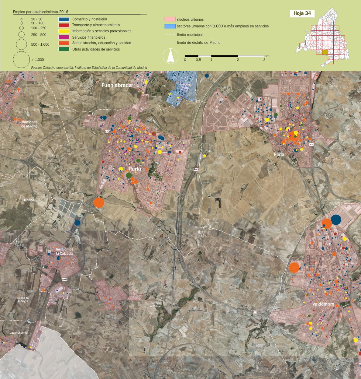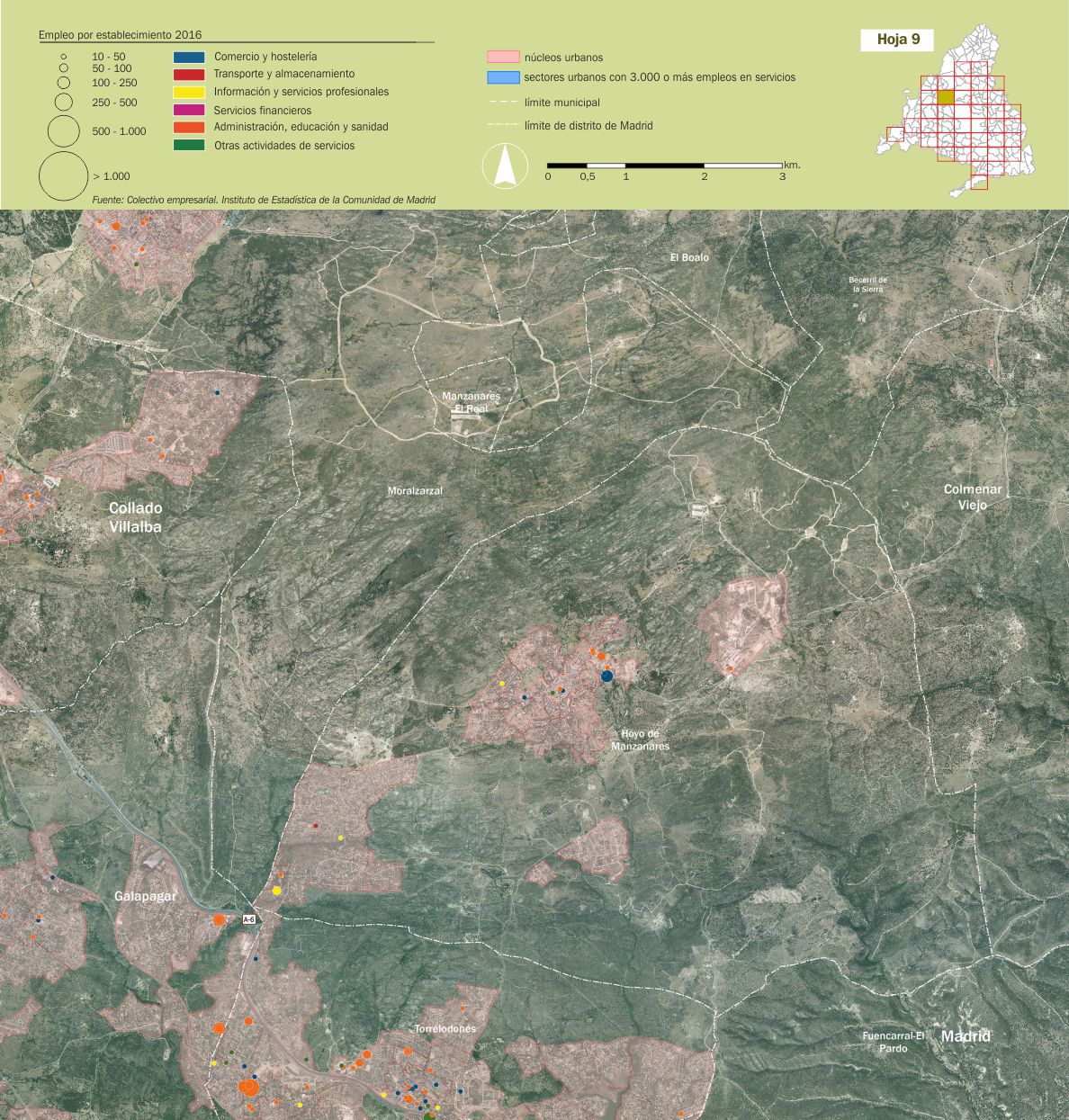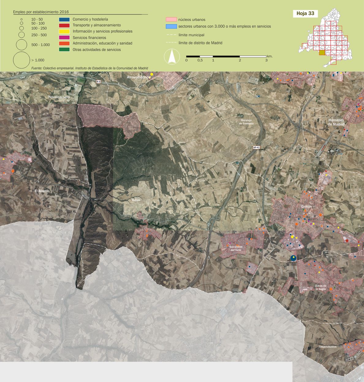 Mosaico cartográfico. Empleo de servicios por establecimientos |