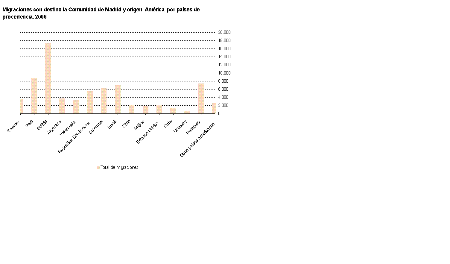 Migraciones con destino la Comunidad de Madrid y origen América por países de procedencia