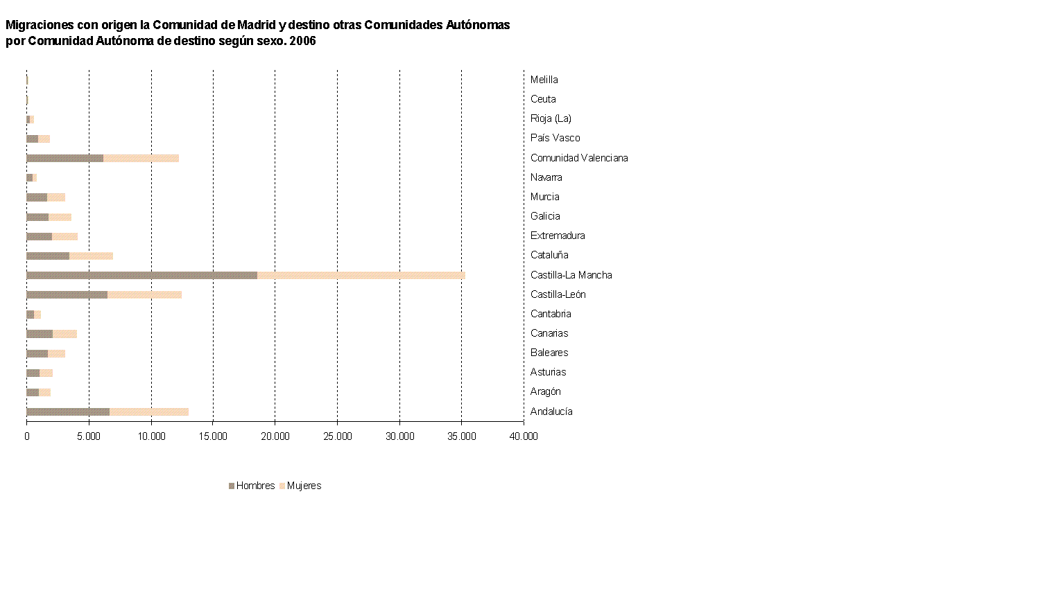 Migraciones con origen la Comunidad de Madrid y destino otras Comunidades Autónomas por Comunidad Autónoma de destino según sexo
