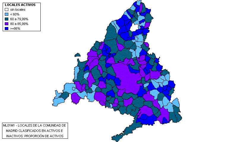 Proporción de locales activos de la Comunidad de Madrid según municipios