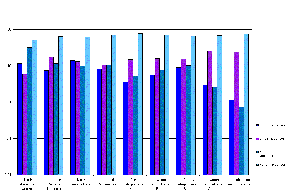Porcentaje de edificios destinados principalmente a viviendas según accesibilidad del edificio