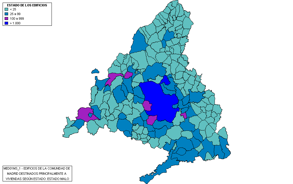 Edificios de la Comunidad de Madrid destinados principalmente a viviendas según el estado del edificio: Malo