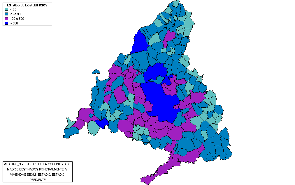 Edificios de la Comunidad de Madrid destinados principalmente a viviendas según el estado del edificio: Deficiente