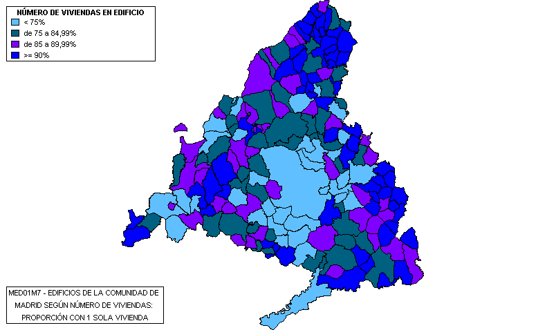 Edificios de la Comunidad de Madrid destinados principalmente a viviendas según número de viviendas: con 1 sola vivienda